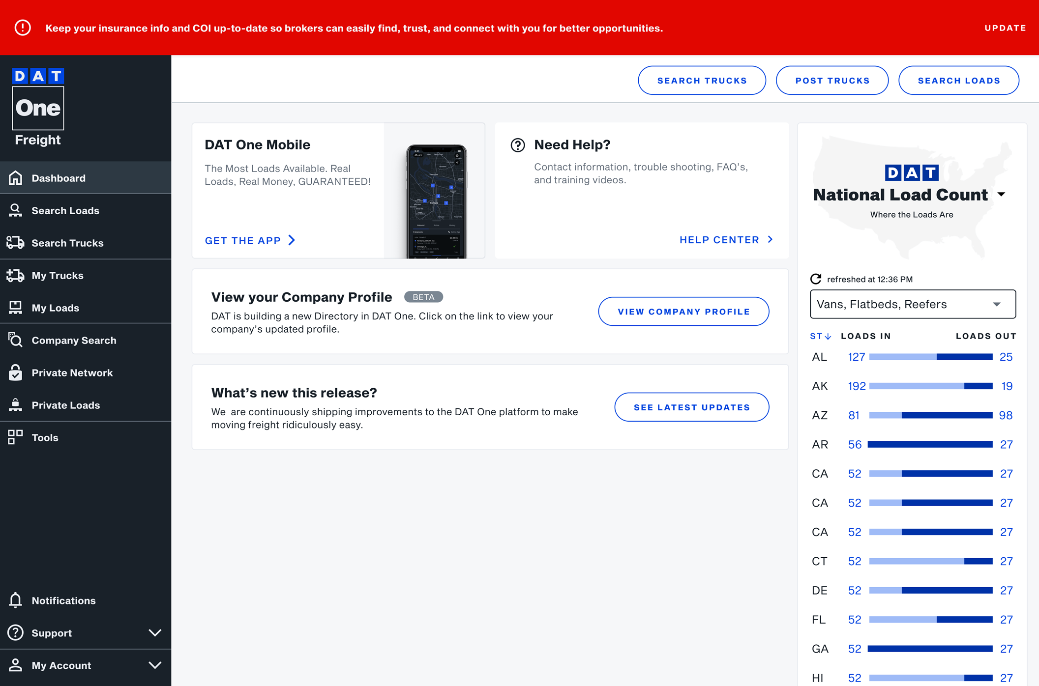 When your insurance needs attention, you’ll see a banner or message in your One DAT account.