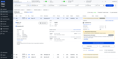 - When viewing the load search results, you will see “Missing Load Requirements”.