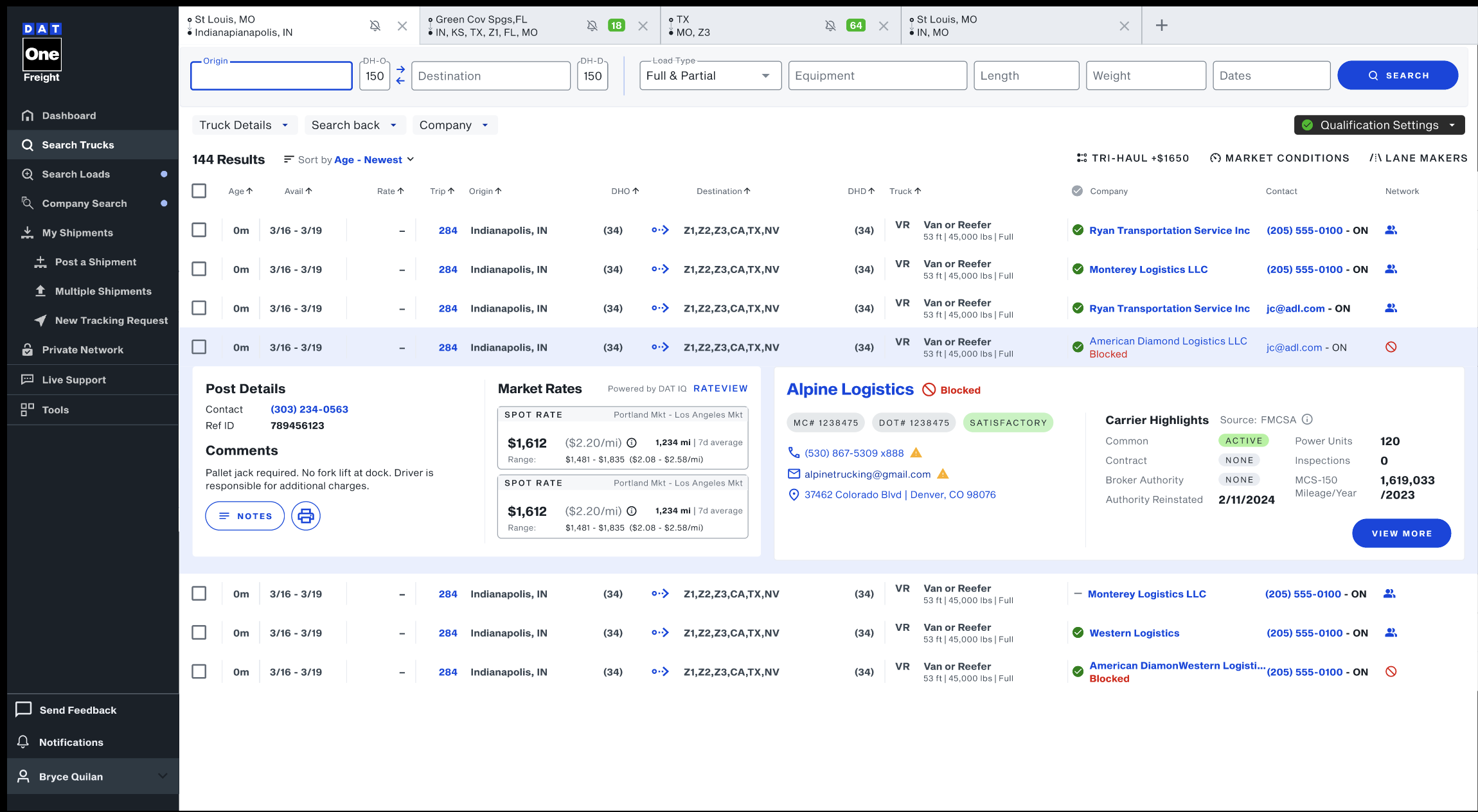 - When browsing truck search results, the “In Network” icon identifies which carriers posting trucks are part of your network. Carriers tagged as Blocked will display a Blocked icon.