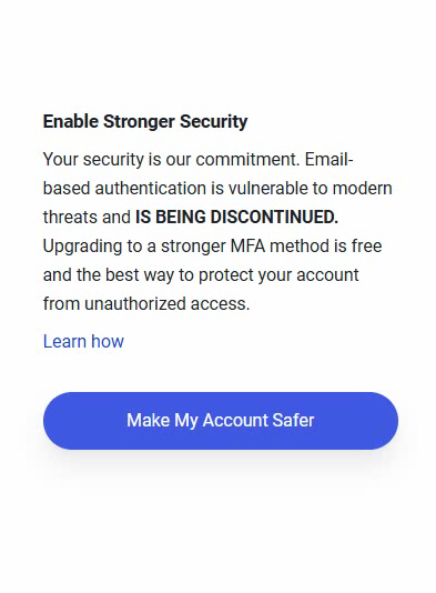 We’re rolling out a new MFA upgrade experience for users who currently rely on email or SMS for verification. This update adds stronger, more secure login options, like authenticator apps or security keys, while ensuring you always have a reliable way to access your account.
