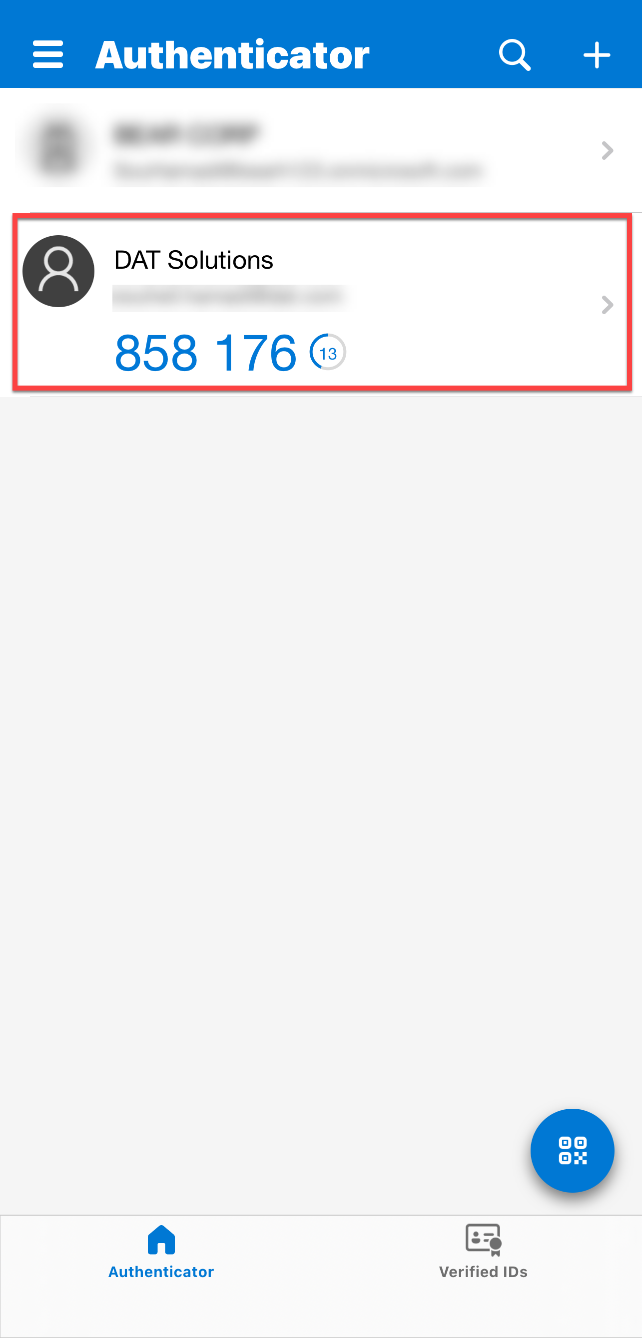 - A new entry labeled DAT Solutions will appear showing a 6-digit code.