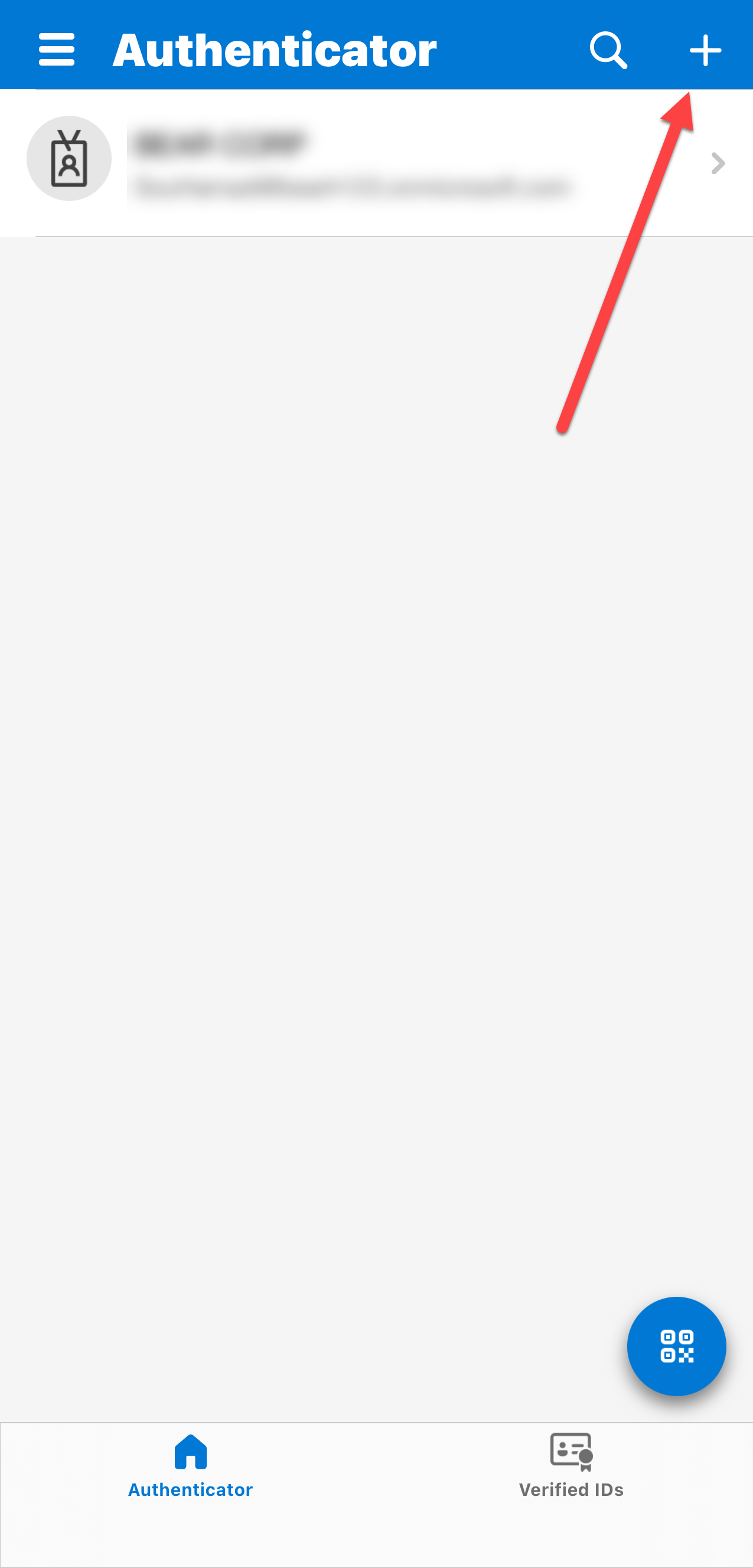 - Open Microsoft Authenticator and tap +.
