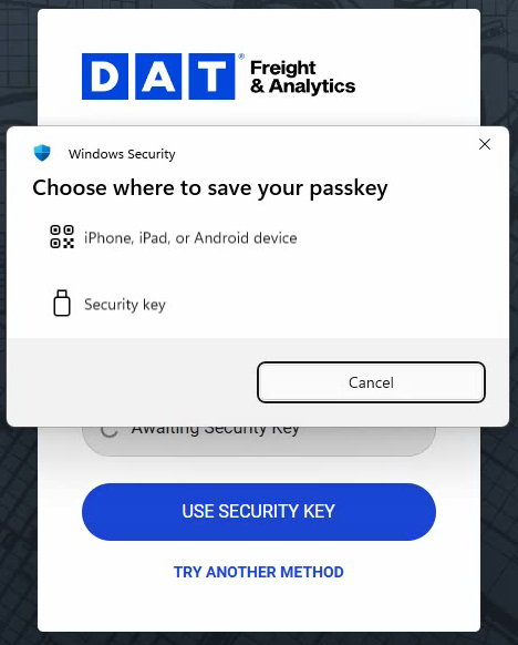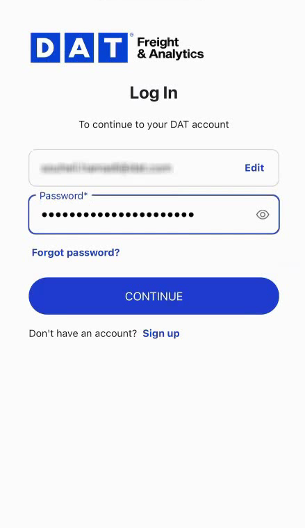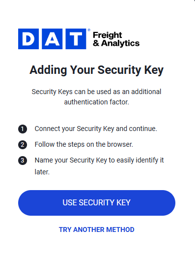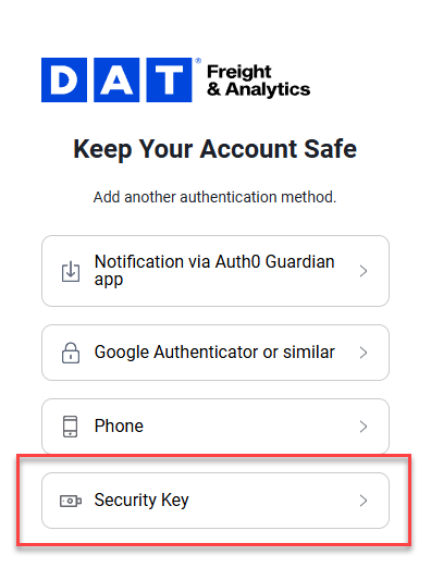 When you sign up or your MFA Is reset, you’ll be prompted to set up multi-factor authentication (MFA) on DAT One Web or DAT One Mobile.