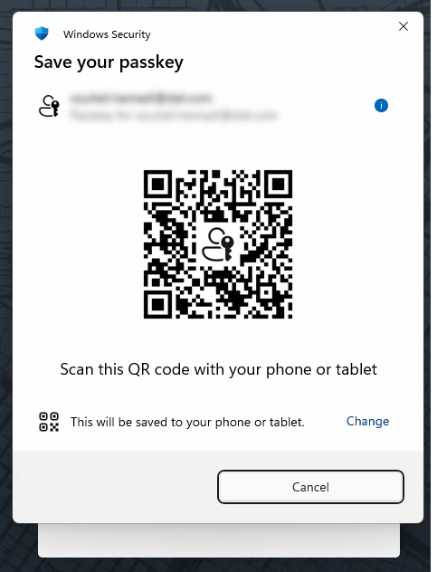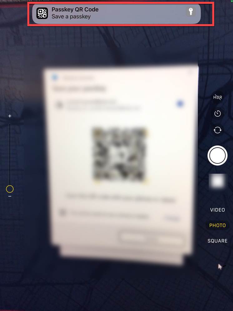 - When you choose to save your passkey in an iPhone, iPad or Android Device, you will see a QR code. Scan it with your mobile devices’ camera.